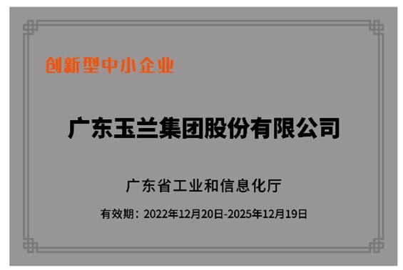 廣東省工業(yè)和信息化廳先后公布了2022年創(chuàng)新型中小企業(yè)和專精特新中小企業(yè)名單,經(jīng)省、市、鎮(zhèn)街等政府部門和專家的層層審核、綜合評定后,玉蘭集團榮獲廣東省“創(chuàng)新型”企業(yè)和廣東省“專精特新”企業(yè)兩項榮譽稱號,這充分展示了玉蘭集團的自主創(chuàng)新力和核心競爭力。