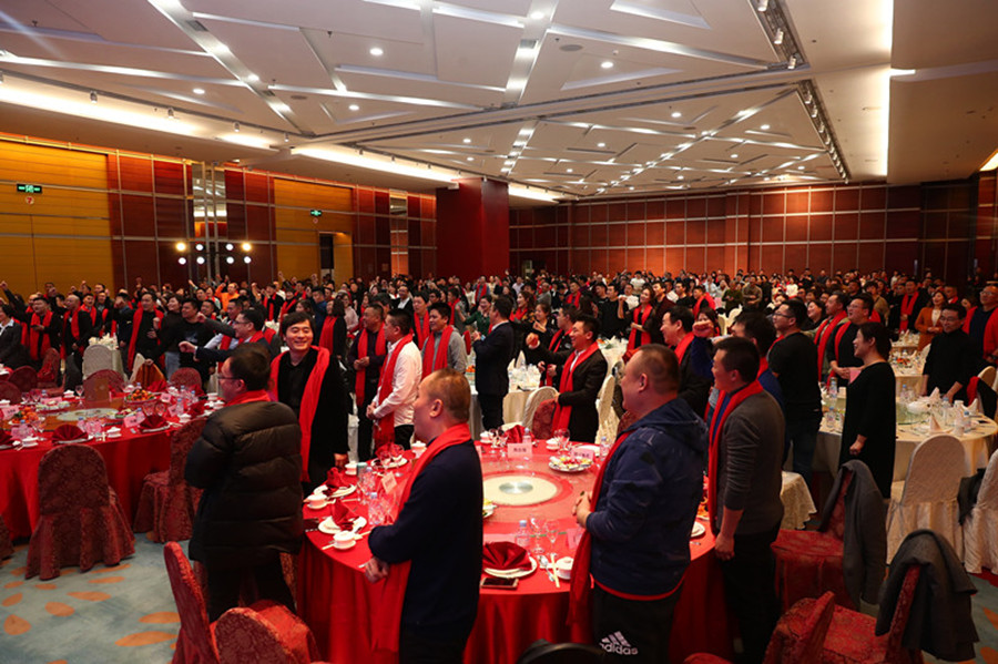 19:00,玉蘭合作伙伴新春答謝晚宴正式開始,并為玉蘭2018年度優(yōu)秀經(jīng)銷商頒發(fā)獎項(xiàng),宴會廳內(nèi)華燈璀璨、濟(jì)濟(jì)一堂,洋溢著熱烈喜慶的氣氛,掌聲、歡呼聲經(jīng)久不息。