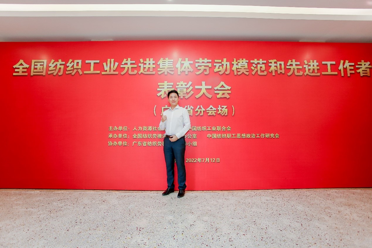2022年7月12日,全國紡織工業(yè)先進(jìn)集體勞動模范和先進(jìn)工作者表彰大會盛大召開。代允濤先生以“全國紡織先進(jìn)個人”身份接受邀請,出席設(shè)于珠江賓館的廣東省分會場,接受國家表彰。